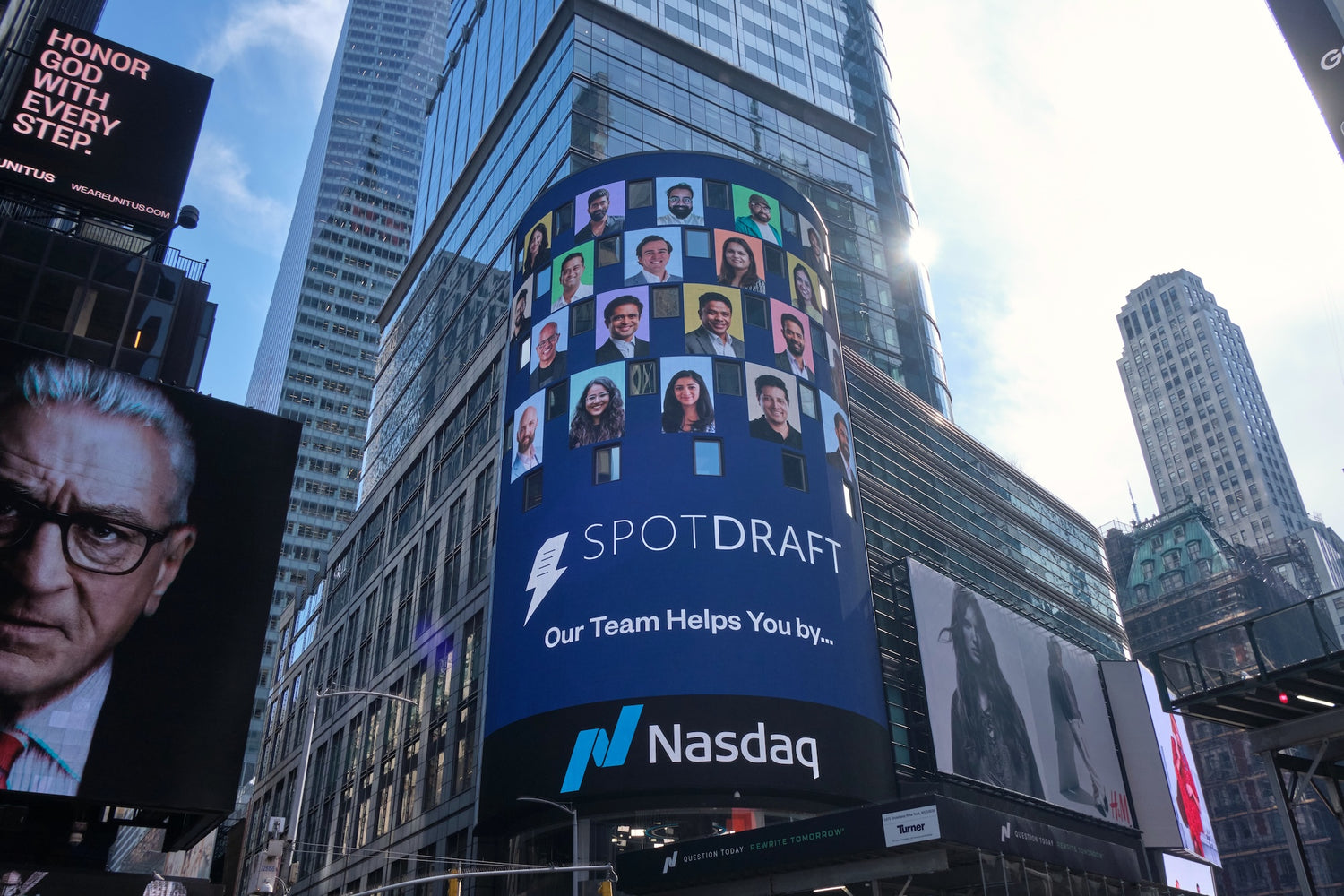 SpotDraft, a premier contract lifecycle management platform, recently featured its Series B funding announcement on the NASDAQ Tower in Times Square, coordinated through a strategic partnership with PR to SKY.