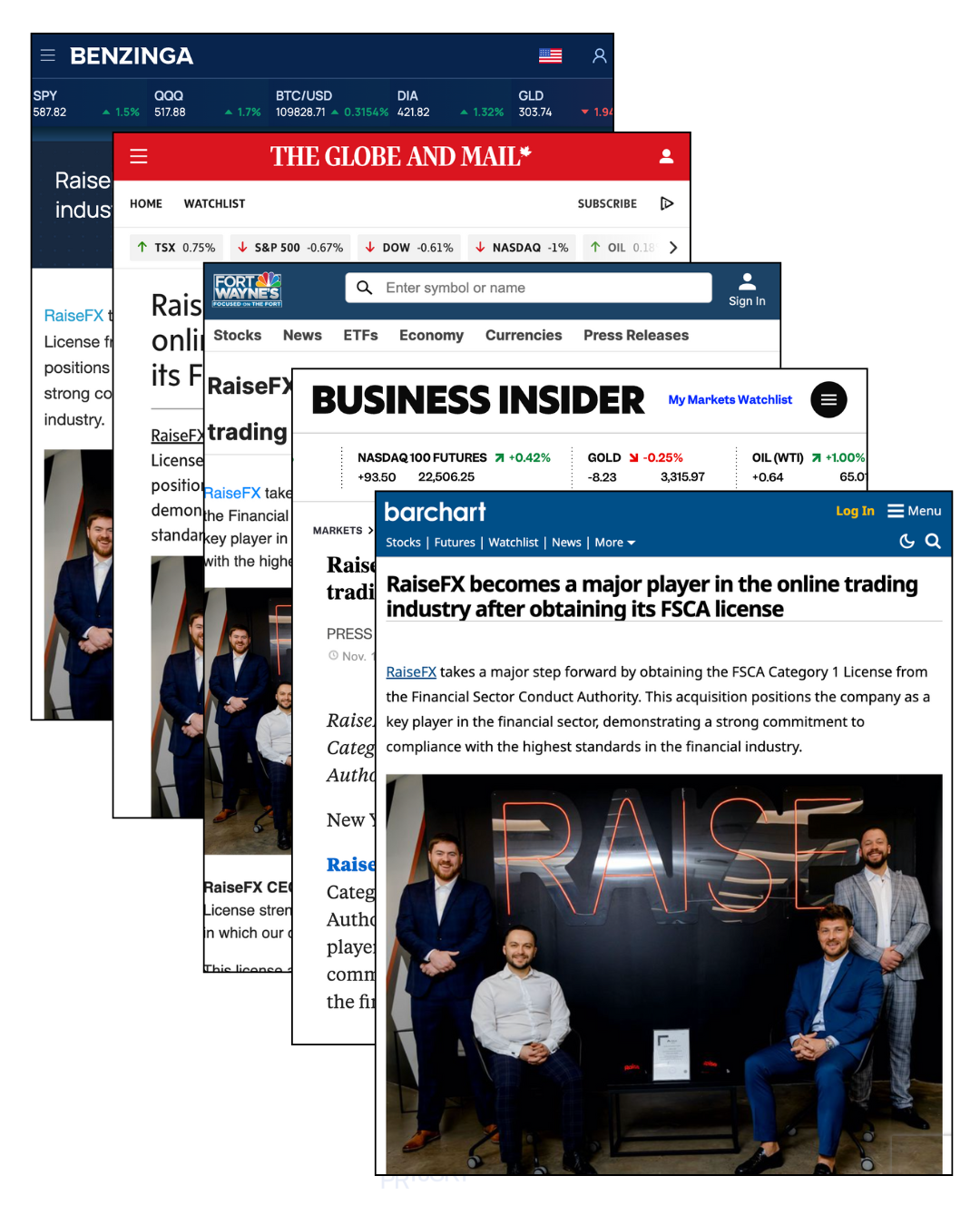 Following its FSCA license acquisition, RaiseFX achieved massive global credibility by appearing on 500+ premier US news platforms via our high-speed distribution network.